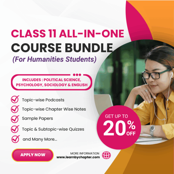This comprehensive learning package is specially designed for Class 11 Humanities (Arts) students, covering all major subjects—English, Political Science, Sociology and Psychology—as per the latest NCERT/CBSE curriculum. It brings together high-quality digital resources to help students understand, revise, and retain concepts effectively.