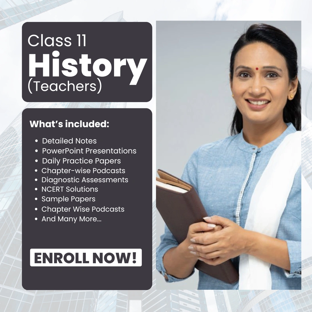 This Class 11 History course for teachers is an all-inclusive resource designed to enhance teaching and student learning. The course includes: