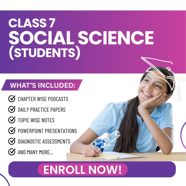 This comprehensive and student-friendly course covers the entire Class 7 Social Science (Subject Code: S07) syllabus, including History (Our Pasts – II), Geography (Our Environment), and Civics (Social and Political Life – II). The course is designed to make students think critically, connect with real-world events, and write structured, high-scoring answers.