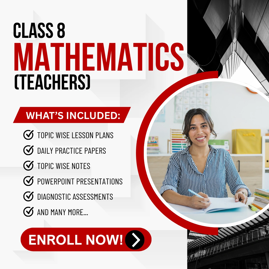 This Class 8 Mathematics course offers a robust toolkit to help you teach math effectively, ensuring your students develop a deep understanding of key concepts and succeed in their studies.